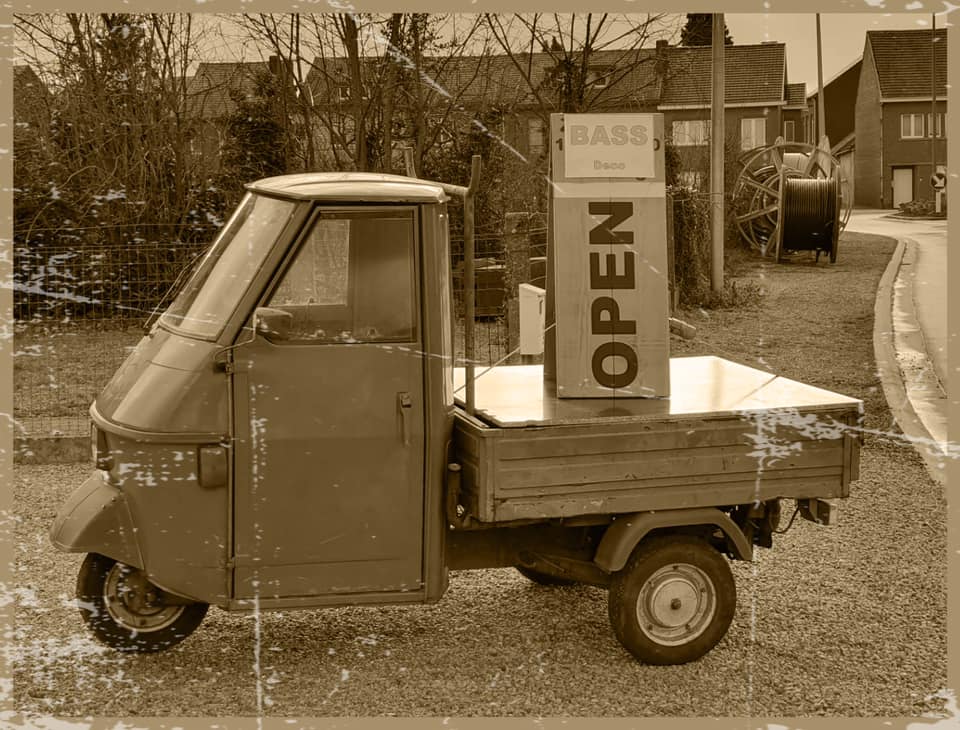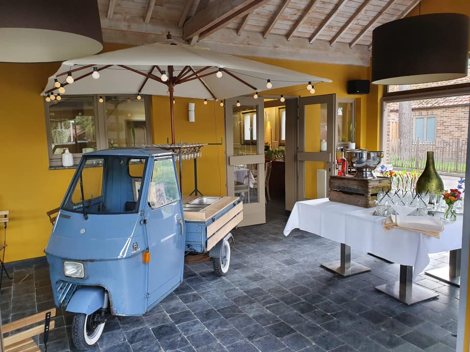In ons portfolio, deze Piaggio APE heeft een unieke originele patine en het laadbakje is voorzien van een eikenhouten oppervlak met kantelbare eiken zijschotjes. Dit zorgt ervoor dat het geheel een authentieke landelijke doch luxe uitstraling heeft.
